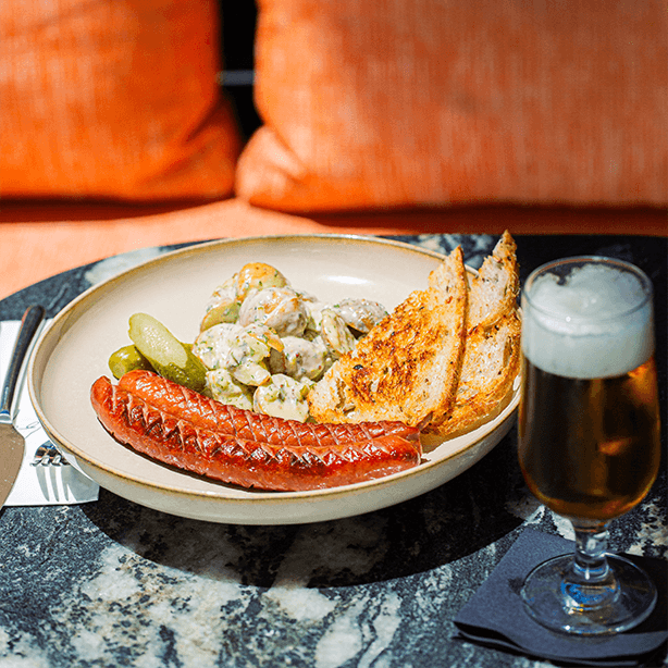Çırpılmış Yumurta, Avokado, Salatalık, Dana Cotto, Çeri Domates, Bahçe Yeşillikleri, Siyah-Yeşil Zeytin, Ezine Peyniri, Tulum Peyniri ve Ekşi Maya Ekmek. (Alerjen; süt,gluten,yumurta)